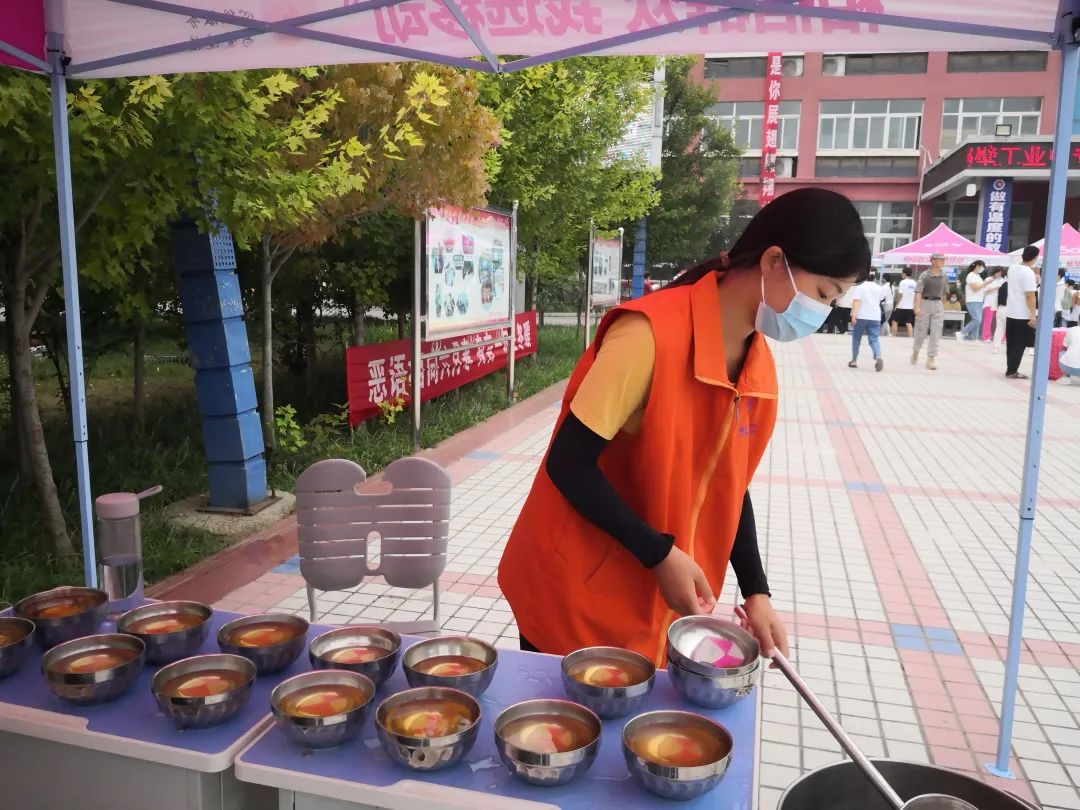 考虑到天气炎热,新生和家长一路劳顿肯定渴了,学校为大家准备了香甜解渴的绿豆水。