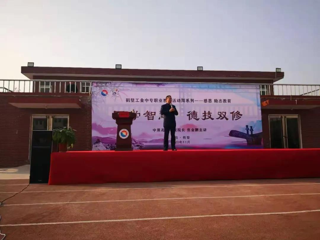 此外,学校还特聘河南省中原孔子书院焦金鹏院长为全校师生进行了“”国学智慧德技双修”、”国学智慧师德师风”大型励志讲座,坚定师生以德立身,以技报国的远大理想,开启了鹤壁工业中专立德树人传统文化教育新篇章。