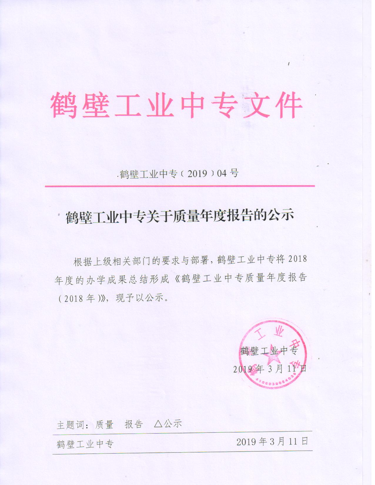 鹤壁工业中专质量年度报告(2018年)